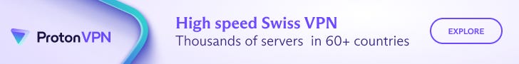 In case you haven’t noticed, it’s time to take your digital hygiene seriously. There are a few super simple, effective things you can do to up your digital self-defense considerably, and the first is to get a VPN. ProtonVPN is the gold standard, with fast service and a commitment to transparency. I promise you: once you realize how easy it is to use your VPN, you’ll be kicking yourself that you didn’t start sooner. Click here to get 55% off VPN Plus ($4.49/mo).